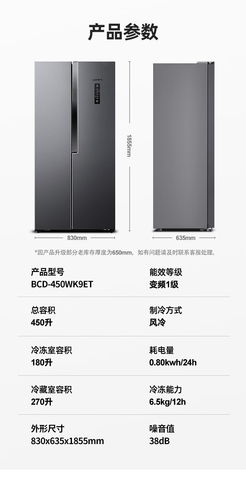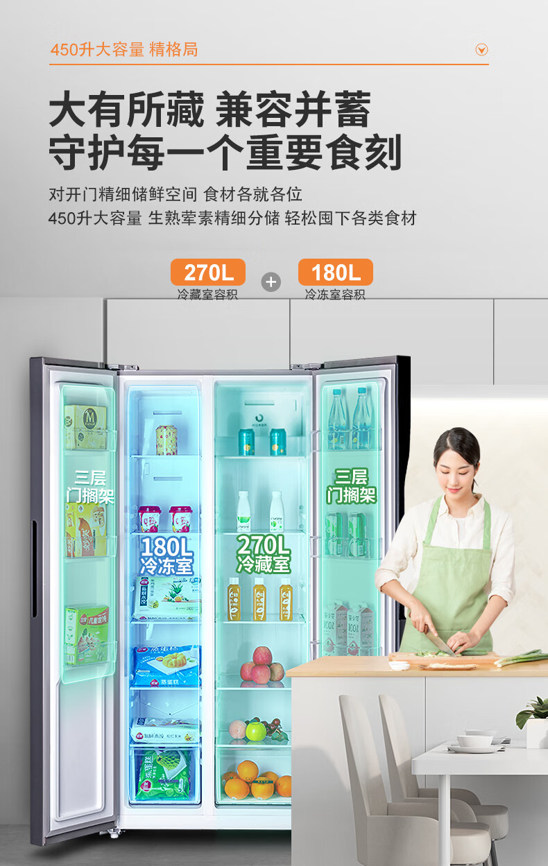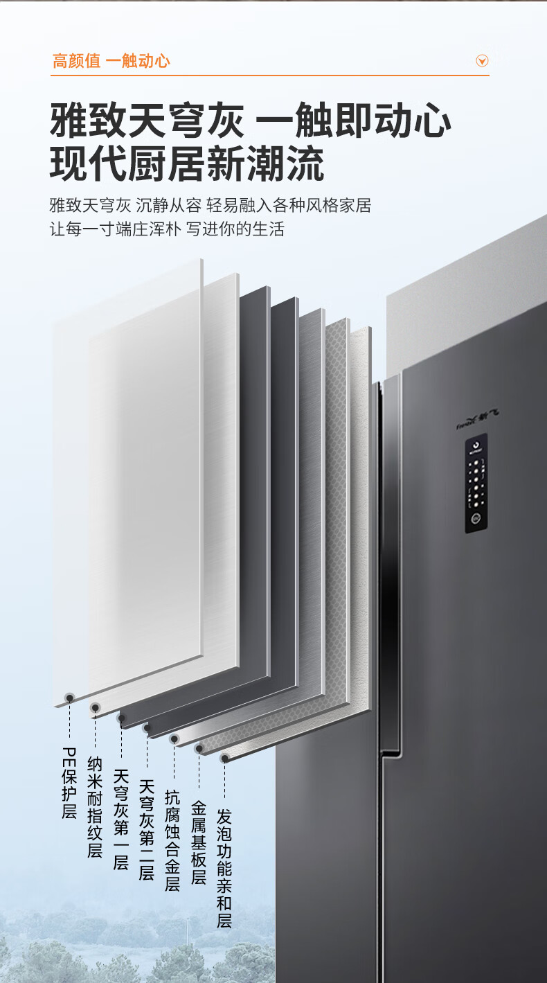 容声465L十字双开门大容量四门冰箱家用一级变频风冷无霜