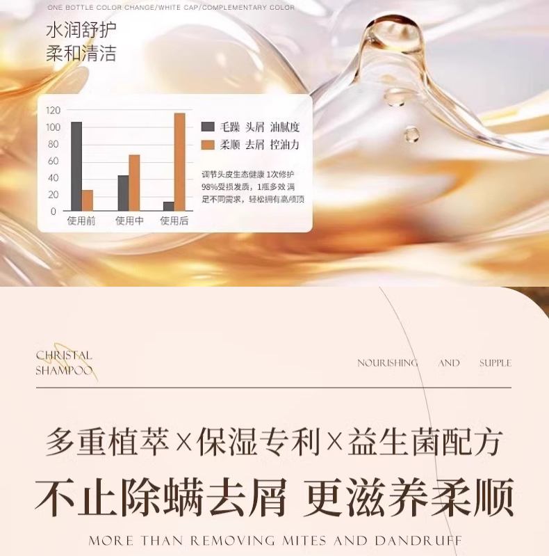 持久留香,去屑止痒,发色亮泽,丰盈蓬松,控油,清爽去油